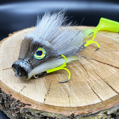 Die große flache Nase des Hog „Lite“ erzeugt im Wasser eine enorme Druckwelle, welche unserem Zielfisch den Eindruck vermittelt, er hätte einen richtig ordentlichen Happen vor sich. Man spürt förmlich den Wasserdruck, den der Köder erzeugt, wenn man ihn einkurbelt oder jerkt. Analog der großen Streamer, wie sie beim Fliegenfischen auf Hecht verwendet werden, ist der Kopf aus Bucktail (ein reines Naturprodukt, die Haare vom nordamerikanischen Weißwedelhirsch) gebunden. Wir verwenden nur Premium Bucktail aus den USA. Die langen Haare des Kopfes spielen verführerisch im Wasser und erzeugen somit einen zusätzlichen Lockreiz. Es sind sowohl neutrale Farben, als auch UV reflektierende Farben erhältlich.